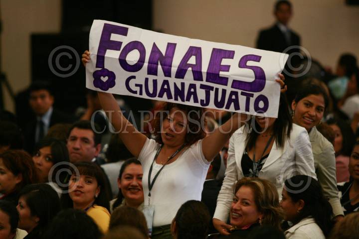 MÉXICO D.F., 12AGOSTO2008.-Una mujer saca un cartel previo al 3.er encuentro internacional de empresarias sociales del fondo nacional de apoyos a empresas en solidaridad 2008, realizado en el salon valparaiso del centro Banamex FOTO: SÁSHENKA GUTIÉRREZ /CUARTOSCURO.COM