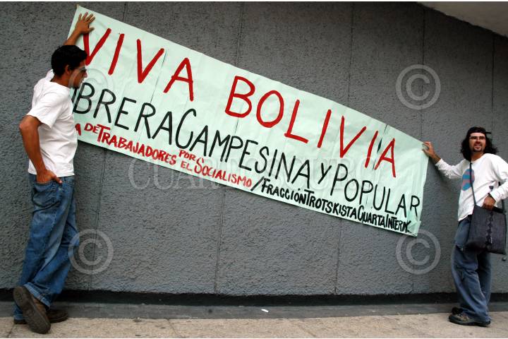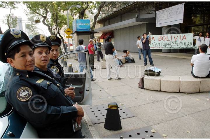 MEXICO, D.F. 11JUNIO2005.- Grupos de apoyo a Bolivia se manifestaron a un costado de la entrada de la embajada del pais sudamericano en paseo de la Reforma, en la ciudad de México FOTO: Miguel Dimayuga/CUARTOSCURO.COM