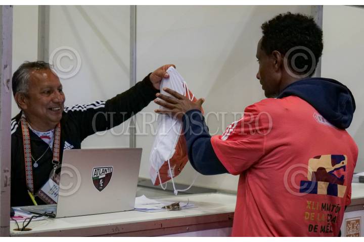 CIUDAD DE MÉXICO, 23AGOSTO2024.- Se entregaron bolsas conmemorativas a los atletas de Élite durante la Expo Maratón en el World Trade Center, en celebración del Maratón de la Ciudad de México, en el cual participarán y que se llevará a cabo el próximo domingo 25 de agosto, desde Ciudad Universitaria hasta el Zócalo capitalino. FOTO: ALICE MORITZ/CUARTOSCURO.COM