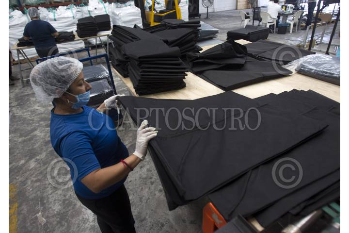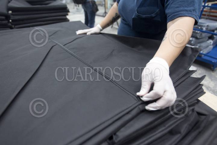 MONTERREY, NUEVO LEÓN, 23ABRIL2020.- La empresa Polyespecial de plástico y polipropileno que opera en Monterrey, se encuentra produciendo hasta 20mil bolsas para cadáveres por día, debido a la demanda en toda la república, mismos que soportan hasta 200 kilos. La manufacturera ha podido emplear hasta 200 personas que pueden trabajar desde sus casa dando el terminado de las bolsas. Desde marzo, el giro de fábricas y comercios ha cambiado para elaborar insumos que se relaciona con la emergencia sanitaria por el Covid-19. FOTO: GABRIELA PÉREZ MONTIEL / CUARTOSCURO.COM