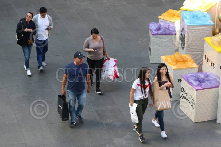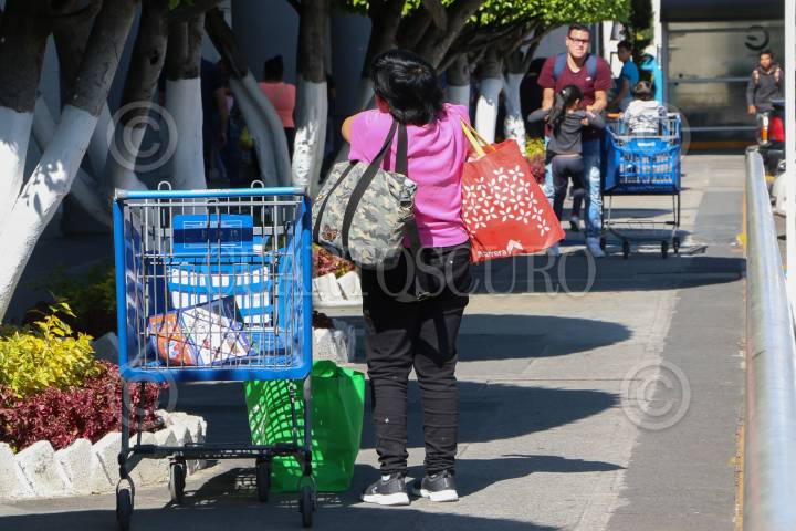 Personas acuden al súpermercado con bolsas de tela, para poder llevarse sus productos,esto debido al prohibición del uso de la bolsa de plastico de un solo uso en la ciudad,