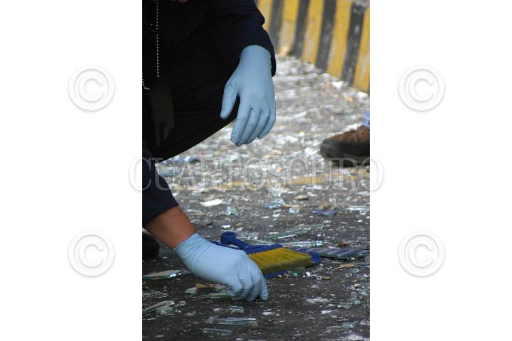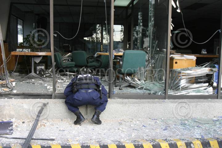 TLANEPANTLA, ESTADO DE MEXICO 18NOVIEMBRE2005.- El Comando Revolucionario del Trabajo "México Bárbaro", emitió un comunicado en el que se atribuye la autoría del estallido de artefactos explosivos en sucursales bancarias del estado de México. El grupo se pronuncia contra el neobileralismo .Aseguran que sus acciones buscan "respaldar y fortalecer la lucha que nuestros hermanos obreros y campesinos impulsan y desarrollan frente al capital". Personal de la AFI realiza investigaciones en el lugar de los hechos. FOTO: Pedro Marrufo/CUARTOSCURO.COM