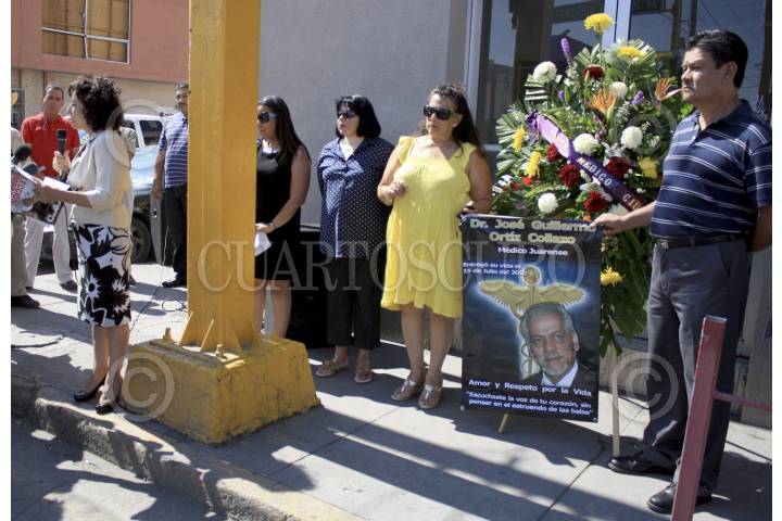 CIUDAD JUÁREZ 15JULIO2012.- El segundo aniversario de la muerte del doctor Guillermo Ortiz Collazo, quien falleció al brindar auxilio a otros en el coche bomba que explotó sobre las avenidas 16 de Septiembre y Bolivia, fué conmemorado este domingo por parte del Comité Médico Ciudadano. Un 15 de julio, pero del año 2010, hace dos, será inolvidable para quienes vivieron de propia experiencia y sufrieron los embates del explosivo colocado por grupo delictivo en un carro que estaba estacionado en la esquina que justamente ubica a la oficina de licencias del Gobierno del Estado, . FOTO: NACHO RUÍZ /CUARTOSCURO.COM