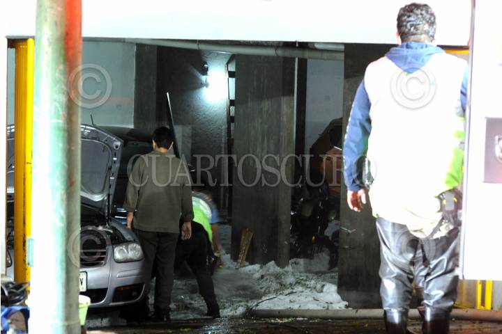 Afectaciones en vehículos que quedaron atrapados entre hielo y agua en estacionamientos subterráneos, luego de la tormenta que azoto la tarde de ayer en la CDMX. Bomberos de la ciudad trabajaron por varias horas apoyando en inundaciones.