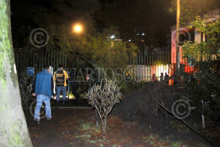 La constantes lluvias en la ciudad han provocado la caída de árboles en diferentes partes de la ciudad, como este en la colonia Militar Marte, en la que solo daño una reja.