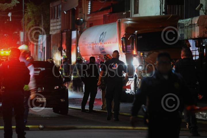 Tremendo susto se llevaron los vecinos de la colonia Granjas México, luego de una fuerte fuga de CO2 en una pipa que descargaba el químico en una empresa de hielo seco. El lugar fue acordonado por policías de este perímetro.