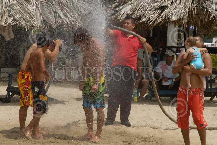 ACAPULCO, GUERRERO, 19SEPTIEMBRE2009.- Participantes del 8vo torneo "Cuija Open de Boogie Board", celebrado en la playa "Brisa de Oro" en Pie de la Cuesa, el evento celebró en la jornada de hoy las semifinales, mañana saldrá el ganador de este singular deporte de entre más de treita exponentes. Los organizadores calificaron de un exito pese al nulo apoyo de las autoridades del deporte municipal. FOTO: BERNANDINO HERNÁNDEZ/CUARTOSCURO.COM