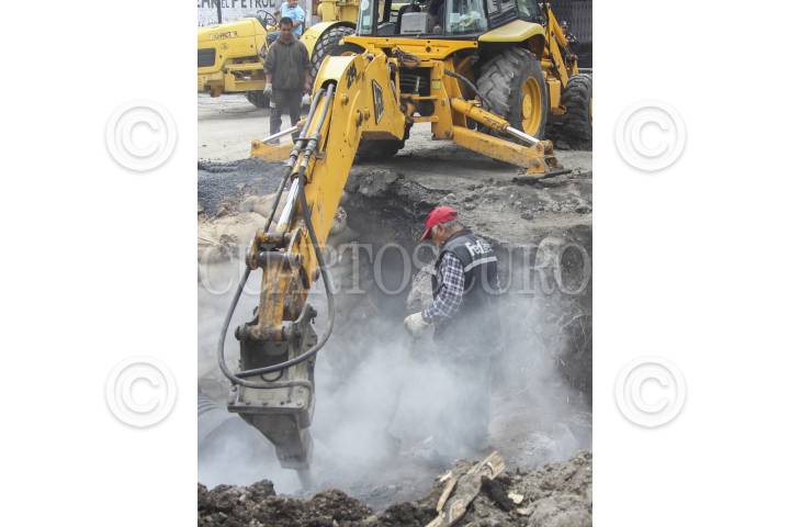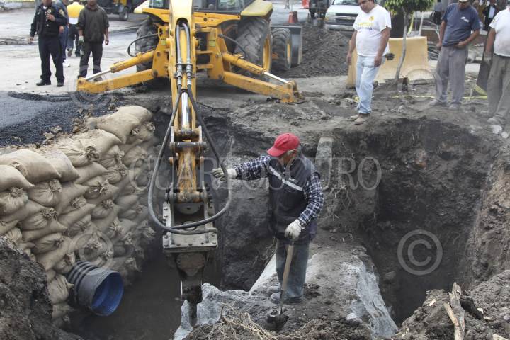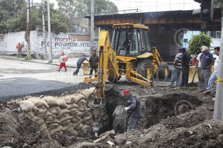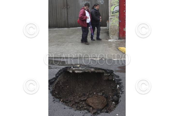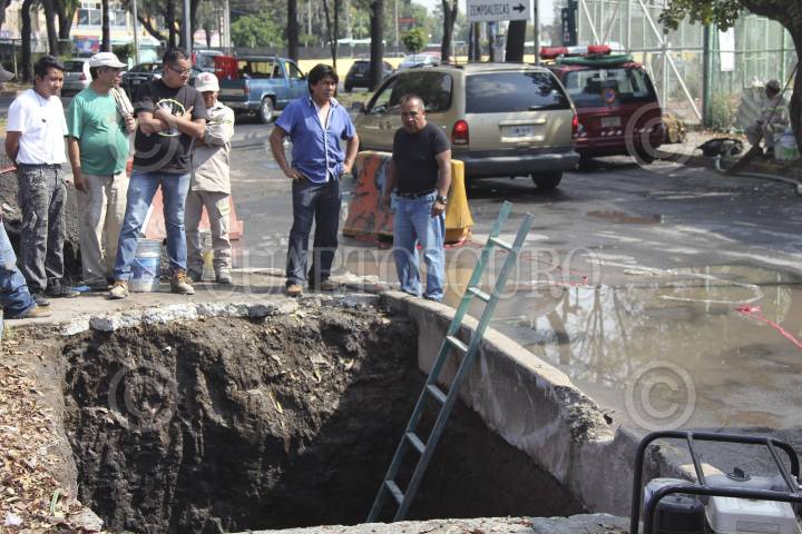 MÉXICO D.F., 26MAYO2014.- Trabajadores del sistema de aguas de la Ciudad de de México, reparan el boquete que se abrió en el cruce de las avenidas Cuitlahuac y Ferrocarril Central en la delegación Azcapotzalco. FOTO: SAÚL LÓPEZ /CUARTOSCURO.COM