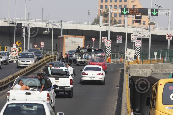 MÉXICO, D.F., 22ENERO2014.- Intenso transito vehicular ocasionó el cierre de carriles centrales de periférico debido a la ruptura de una tubería de agua. El jefe de gobierno autorizó la cancelación del pago de peaje del segundo piso hasta que se restablesca la reparación del boquete. FOTO: SAÚL LÓPEZ /CUARTOSCURO.COM