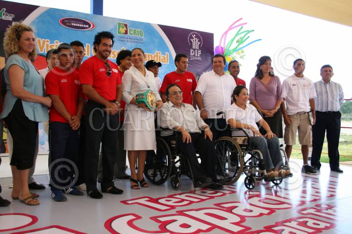 VILLAHERMOSA, TABASCO, 27MAYO2008.- Boxeadores que conforman la función denominada "Championship Boxing Asia in Mayan Border" realizaron una visita de cortesia en el Centro de Rehabilitación Integral de Quintana Roo (CRIQ), donde fueron recibidos por infantes con discapacidad y el edil Andres Ruiz Morcilla. FOTO: MARCO POLO GUZMÁN HERNÁNDEZ/CUARTOSCURO.COM