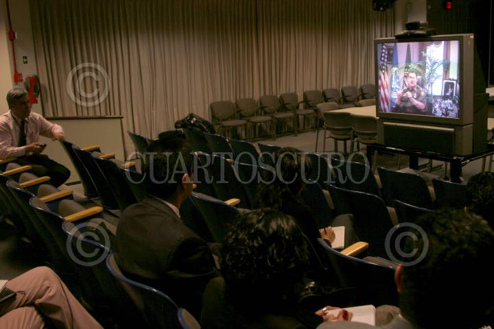 México D.F., a 31 de Octubre de 2007.- Este medío día en la enbajada de EUA, se llevo acabo una videoconferencia con el encargado de la border patrol de Laredo Texas, Carlos X. Carrillo. FOTO: VICTORIA VALTIERRA/CUARTOSCURO.COM