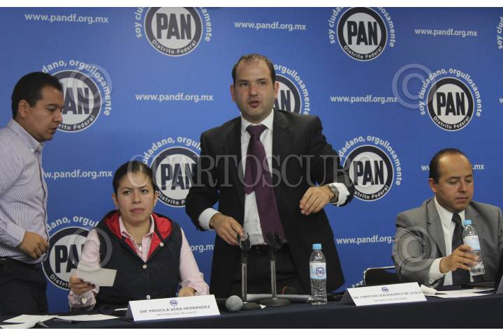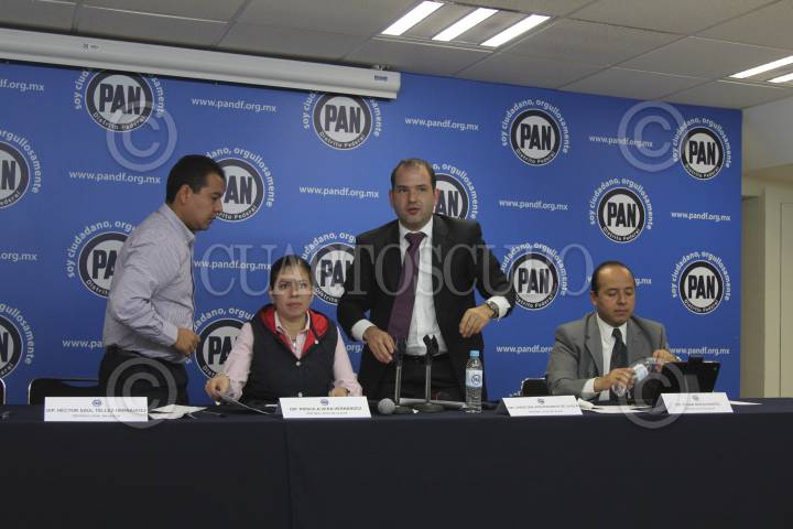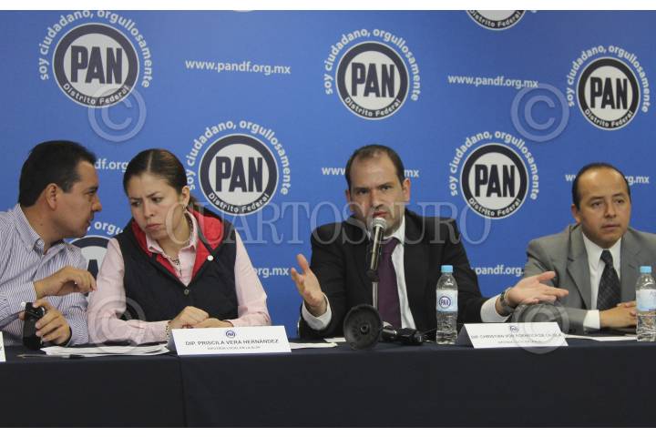 MÉXICO, D.F., 01NOVIEMBRE2012.- Hector Saúl Tellez, Priscila Vera Gernández, Christian Von Roehrich y Edgar Borja, asambleístas del PAN, dieron detalles sobre la problemática de la ruptura de la membrana en el bordo poniente. FOTO: SAÚL LÓPEZ /CUARTOSCURO.COM