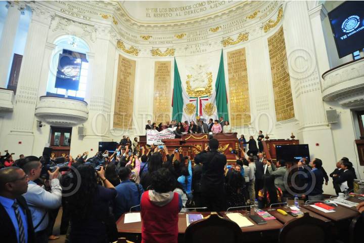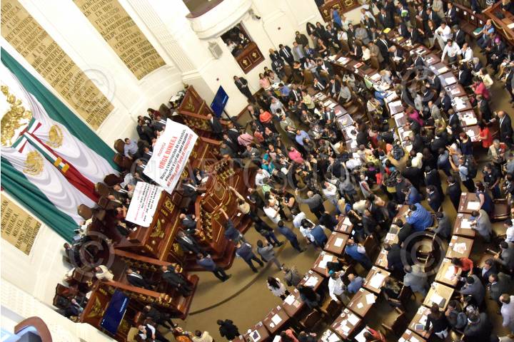CIUDAD DE MÉXICO, 07NOVIEMBRE2017.- Los diputados de Morena tomaron la tribuna de la Asamblea Legislativa del Distrito Federal cuando se tocó el tema de la construcción de una planta termovalorizadora en el Bordo Poniente, en donde los morenistas acusaron a Miguel Ángel de Mancera de ser su negocio, acusando al Jefe de Gobierno de no tener dinero para la reconstrucción de la ciudad tras los sismos de septiembre, perso si para un negocio de 100 mil millones de pesos. FOTO: CUARTOSCURO.COM
