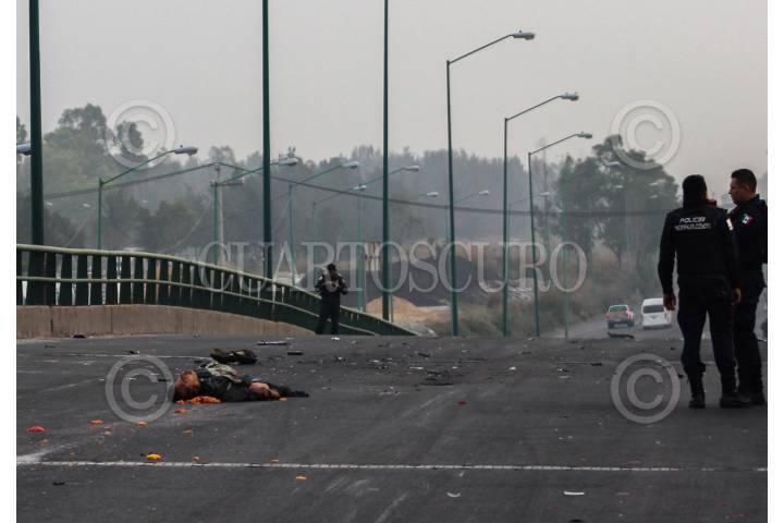 NEZAHUALCOYOTL, ESTADO DE MÉXICO, 21ABRIL2015.- Una persona perdió la vida al ser arrollada cuando viajaba en su sobre Periférico y Bordo de Xochiaca en la parte alta del puente vehicular de la colonia del Sol. FOTO: ARMANDO MONROY /CUARTOSCURO.COM