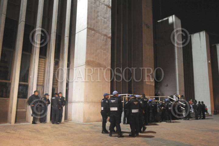 MÉXICO, D.F., 14SEPTIEMBRE2014.- Policías caitalinos custodian a un hombre que se quedó dormido en aparente estado etílico sobre la calle Francisco I. Madero, casi esquina con Bolívar de la colonia centro. La persona de aproximádamente 40 años no ha sido identificada aun. FOTO: IVÁN STEPHENS /CUARTOSCURO.COM