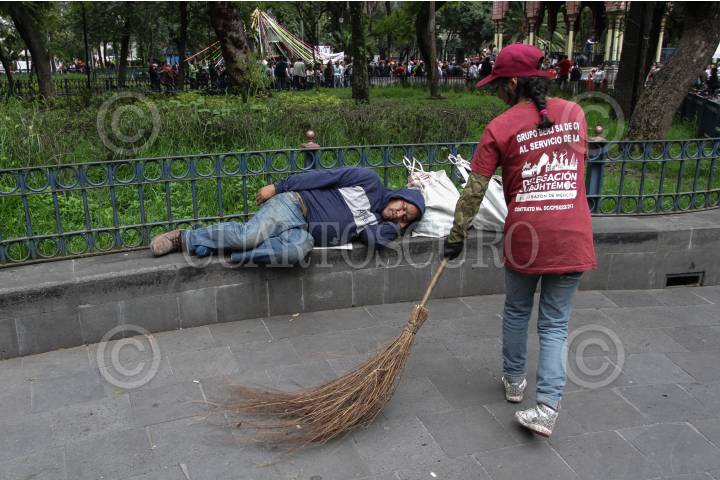 MEXICO, D.F., 16MAYO2015.- Un par de hombres en estado de ebriedad duermen la borrachera en un parque del centro histórico de Coyoacán. FOTO: DAVID POLO /CUARTOSCURO.COM