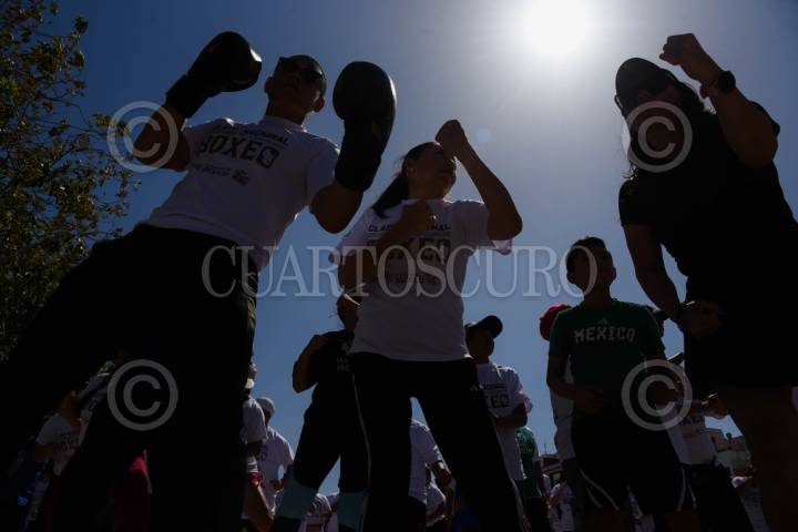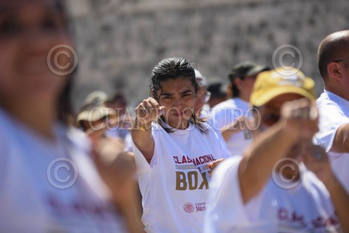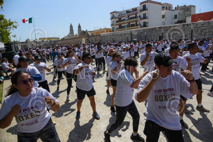 CAMPECHE, CAMPECHE, 06ABRIL2025.- Campechanos se reunieron en la Plaza del República para participar en la Clase Nacional de Box, evento que contó con la participación de la gobernadora del estado, Layda Sansores. FOTO: MICHAEL BALAM/CUARTOSCURO.COM