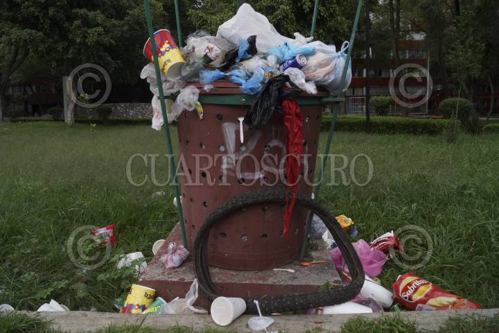 MÉXICO D.F., 20AGOSTO2012.- Un contenedor de basura ubicado en el parque central de la unidad habitacional Nonoalco Tlateloclo, como muchos otros en la Ciudad de México, se encuentra excedido en su capacidad. FOTO: PEDRO VALTIERRA /CUARTOSCURO.COM