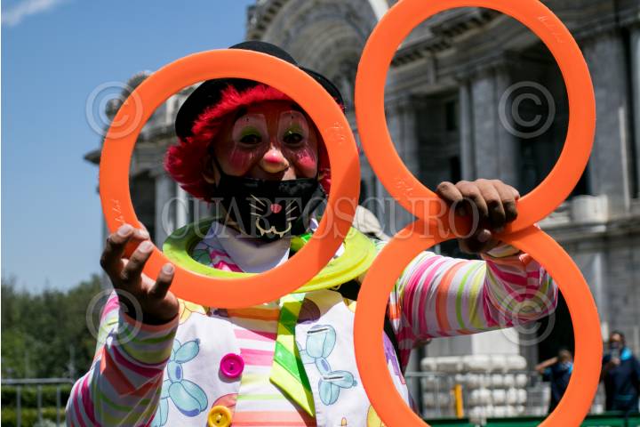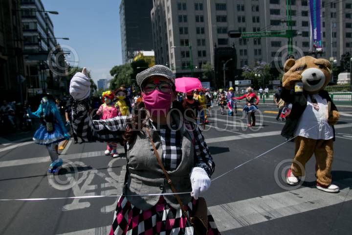 Artistas urbanos marcharon del Monumento a la Revolución al Zócalo capitalino para exigir apoyos económicos como parte de las medidas impementadas por Covid-19.