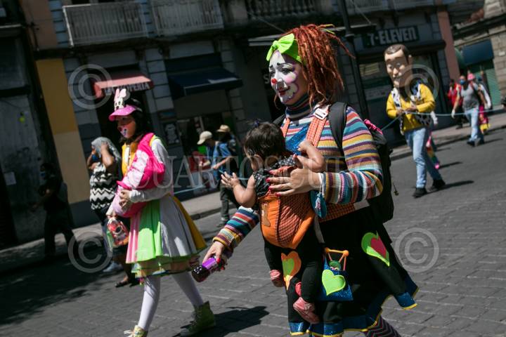 Marcha de vendedores y botargas con motivo de las fiestas patrias