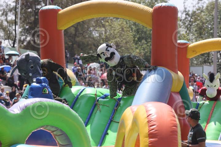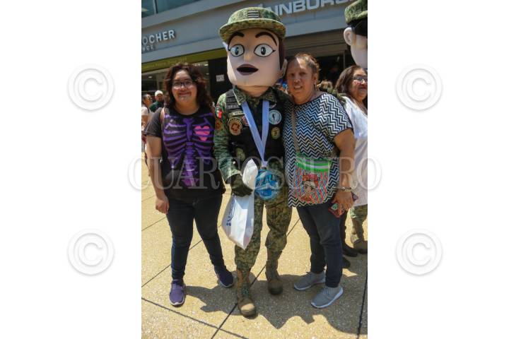 CIUDAD DE MÉXICO. 30ABEIL2024.- Botargas de la Secretaria de la defensa nacional conviven con chicos y grandes en la calle de Madero en el primer cuadro de la Ciudad. FOTO: VICTORIA VALTIERRA/CUARTOSCURO.COM
