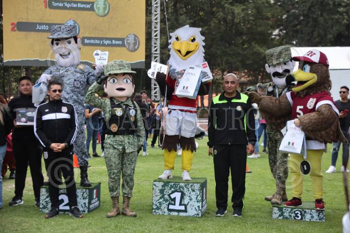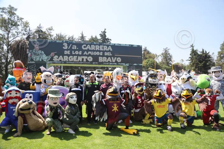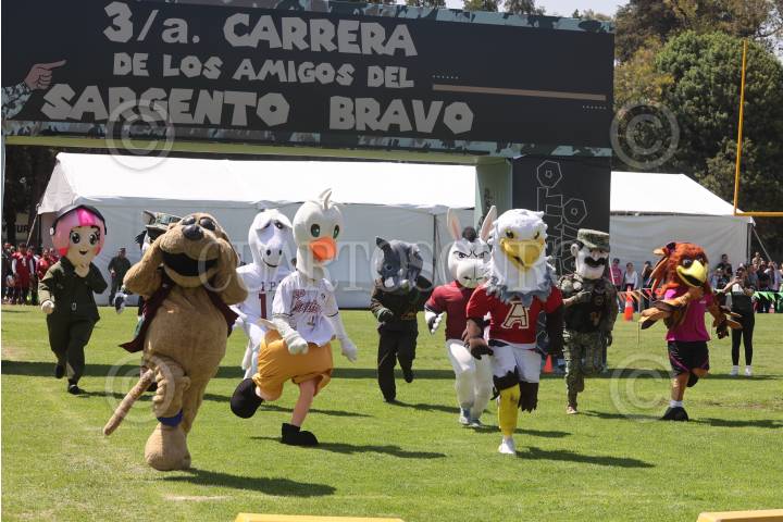 NAUCALPAN DE JUÁREZ, ESTADO DE MÉXICO, 06JULIO2024. Se llevó a cabo la 3a carrera de amigos del Sargento Bravo. Carrera de botargas que se celebra en el Estadio de Centinelas del Campo Militar 1-A. FOTO: EDGAR NEGRETE LIRA/CUARTOSCURO.COM