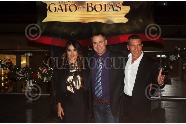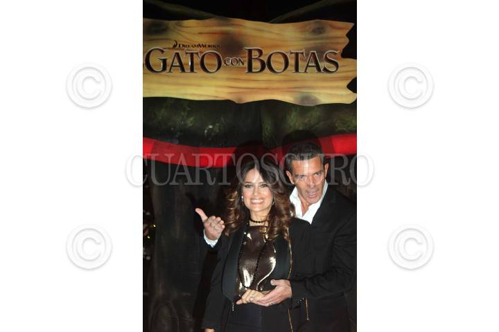 MÉXICO, D.F., 15NOVIEMBRE2011- Antonio Banderas y Salma Hayek acudieron a la premier de la película "El gato con botas". FOTO: IVÁN MENDEZ/CUARTOSCURO.COM