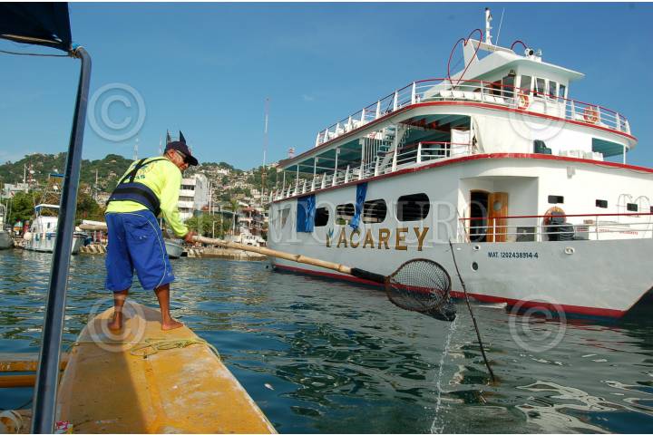 ACAPULCO, GUERRERO, 14OCTUBRE2009.- Trabajadores del gobierno estatal sacan de las agua de la bahía de Acapulco de tres a cuatro toneladas diarias de basura, desde botes de plastico, cervezas y otros desperdicios. FOTO: MARINO D. VALDEZ/CUARTOSCURO.COM