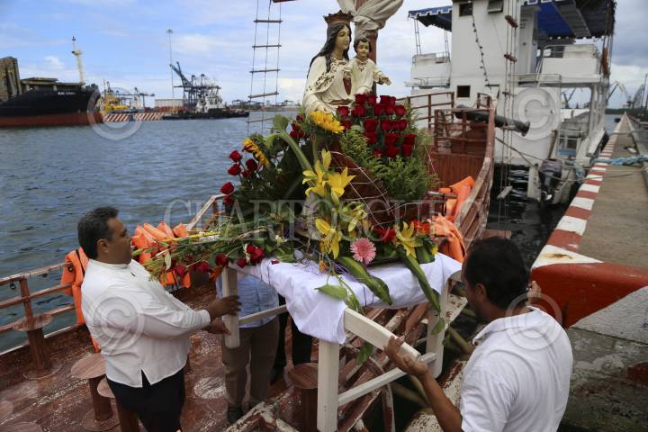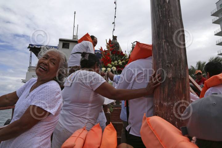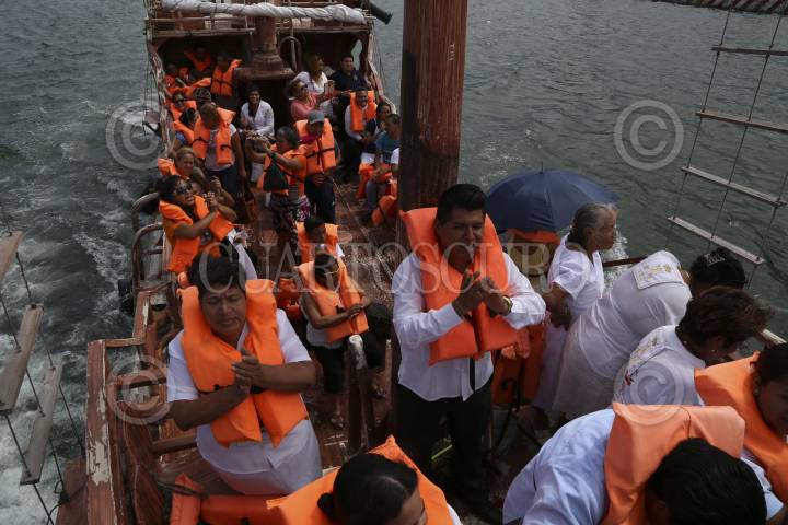 VERACRUZ, VERACRUZ, 24SEPTIEMBRE15.- Entre cantos y oraciones, seguidores de la Virgen de la Merced navegaron en el barco Emperador para realizar una ofrenda floral a la imagen que yace sumergida en el Arrecife de los Pájaros con motivo del 797 aniversario de su Orden y casi 500 años de su llegada a Veracruz. FOTO: ILSE HUESCA / CUARTOSCURO.COM