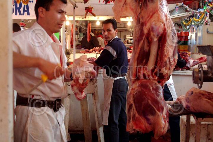 MEXICO, D.F., 30DICIEMBRE2010.- En la Macro Abastecedora de Carne Ferrería (MAC), o conocido popularmente como "Rastro de Ferrería", ubicado en la delegación Azcapotzalco, sitio donde en años anteriores se sacrificaba el ganado al abasto público y que ahora funciona como distribuidora de carnes, principalmente de bovino y porcino. En esta época de fiestas navideñas es muy frecuente la visita de comerciantes de este ramo y público en general. Trabajadores de este rastro confirman que la venta esta a la baja en comparación con otros años. FOTO: MISAEL VALTIERRA/CUARTOSCURO.COM