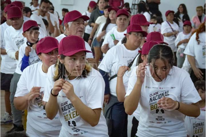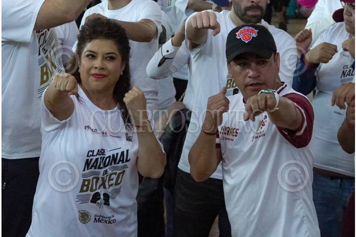 CIUDAD DE MÉXICO, 22FEBRERO2025.- Clara Brugada, jefa de gobierno, encabezó el inicio del programa “Clase Nacional, Boxeando por la Paz”, con el cual se busca que cada vez más capitalinos se acerquen a realizar actividad física y en concreto al deporte del boxeo. FOTO:ROGELIO MORALES/CUARTOSCURO.COM