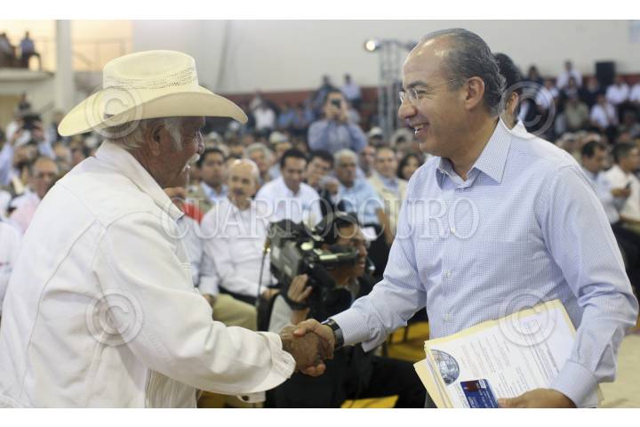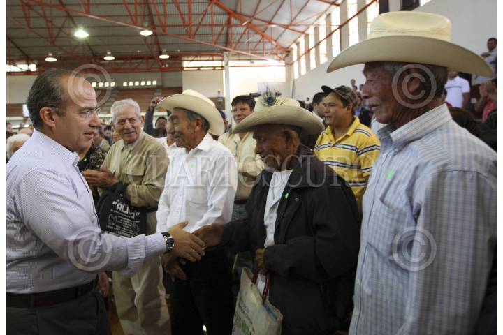 ZAMORA, MICHOACAN, 04MARZO2012.- Felipe Calderon, Presidente de México durante la entrega de apoyos a ex trabajadores migratorios mexicanos. FOTO: ALFREDO GUERRERO /CUARTOSCURO.COM