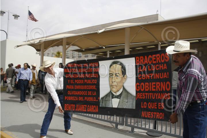 CIUDAD JUÁREZ, CHIHUAHUA, 19FEBRERO2014.- En demanda del pago de sus ahorros realizados durante la segunda mitad del siglo pasado, y en rechazo a la vista a México del presidente estadunidense, Barack Obama, braceros del estado de Chihuahua se manifestarán frente al Consulado de Estados Unidos en Ciudad Juárez. FOTO: NACHO RUIZ /CUARTOSCURO.COM