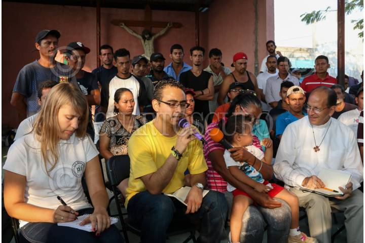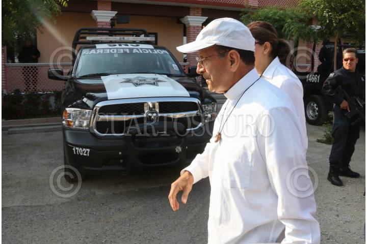 CIUDAD IXTEPEC, OAXACA, 14ABRIL2015.- El Viacrucis "Fronteras Aliadas" que encabeza el defensor de derechos humanos y fundador del albergue Hermanos en el Camino, Alejandro Solalinde Guerra, anunció que la salida de esta caravana en la que participan 293 migrantes centroamericanos se realizará este 15 de abril, sin importar el retén montado por el Instituto Nacional de Migración (INM) en la autopista Salina Cruz - La Ventosa. Acompañado de Perseo Quiroz Rendón, director Ejecutivo de Amnistía Internacional México, el presbítero visitó la zona de retén donde se verificó la presencia de policías federales y agentes de migración. FOTO: ARTURO PÉREZ ALFONSO /CUARTOSCURO.COM
