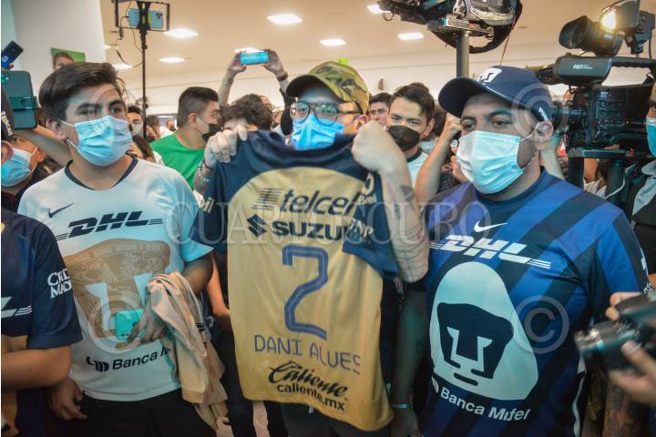 Aficionados de los Pumas, se dieron cita en la terminal del Aeropuerto Internacional de la Ciudad de México, para esperar el arribo de Dani Alves, jugador brasileño de futbol, quien llegó a la ciudad para presentar los exámenes médicos y firmar como nuevo refuerzo de los Pumas de la UNAM,. El jugador, fue trasladado por otra ruta de salida al interior del aeropuerto.