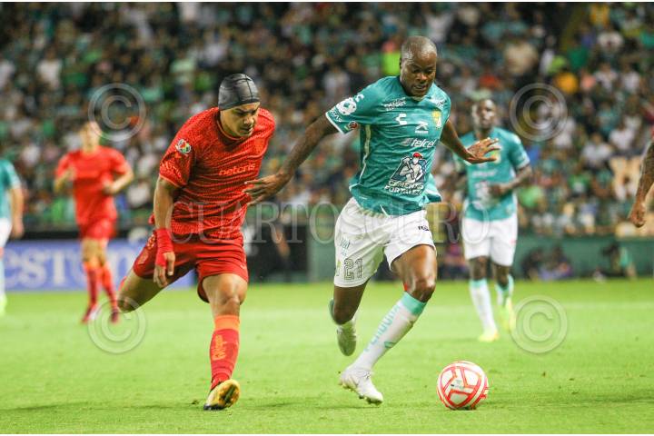 El León se impone un gol a los Bravos de Juárez, en el Estadio León. En la imagen Víctor Dávila (León).