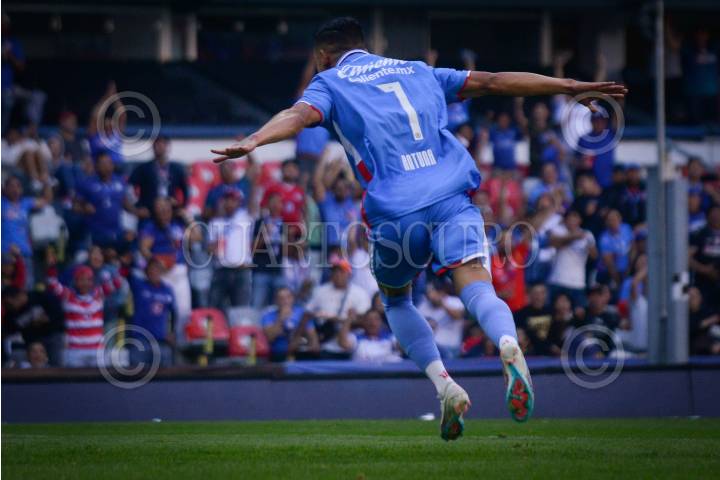Uriel Antuna, delantero del Cruz Azul, celebra su anotación frente al club Juárez, en partido correspondiente a la jornada 9 del torneo Clausura 2023 de la Liga MX.