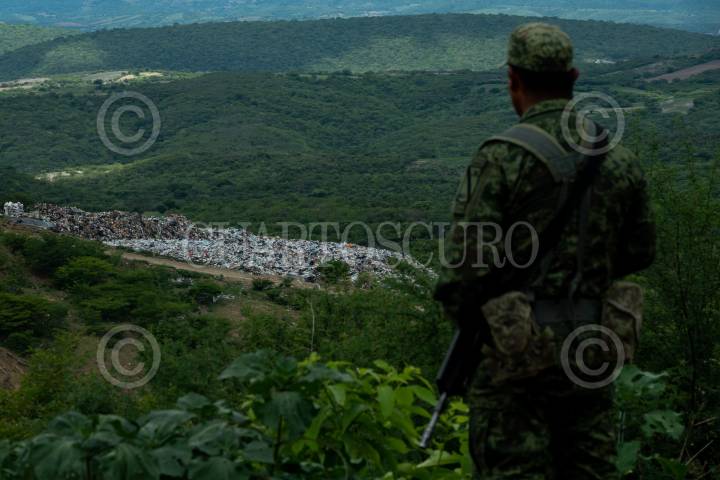 Elementos del ejército acompañaron a las integrantes de la Unión de Familias Resilientes durante la brigada de búsqueda en los alrededores del basurero de Jojutla, Morelos.