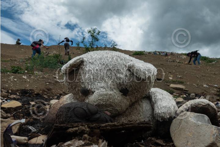 Toma de fotografías de tennis encontrados en un basurero durante el primer día de la Brigada de Búsqueda de Pamela Gallardo en un perímetro del kilómetro 13 del valle del Tepozán, en el Ajusco