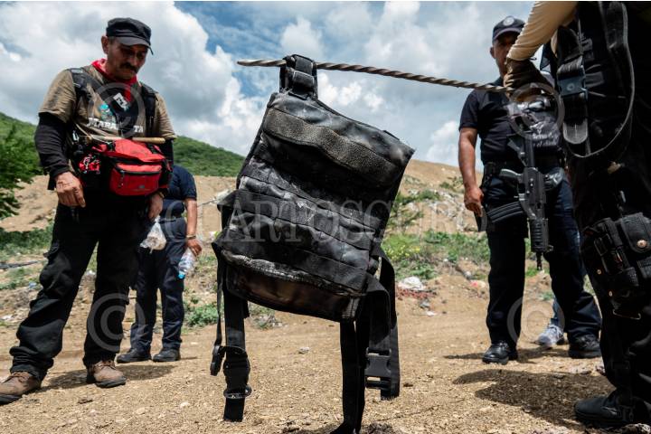 Un chaleco táctico fue encontrado por las integrantes de la Unión de Familias Resilientes durante la brigada de búsqueda en los alrededores del basurero de Jojutla, Morelos.