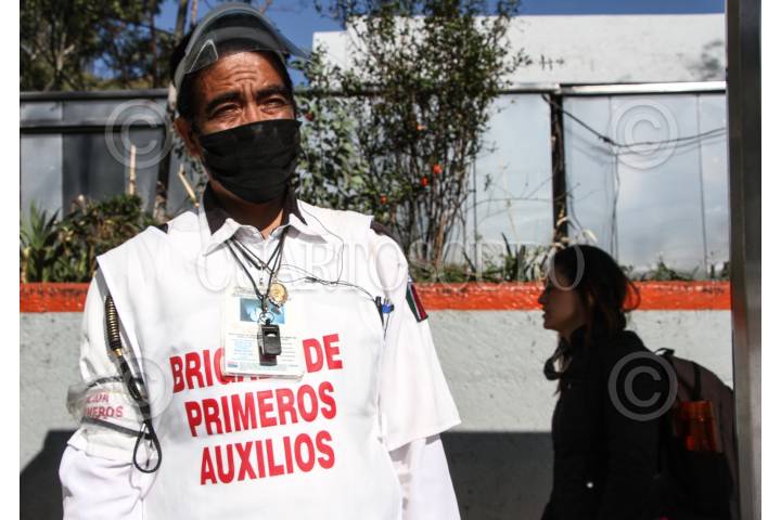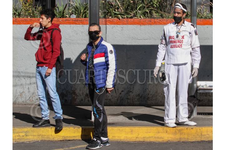 Brigadista mantiene apoyo a transeúntes durante la pandemia por COVID-19 en la ciudad.
