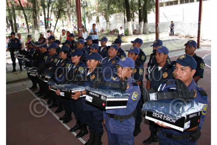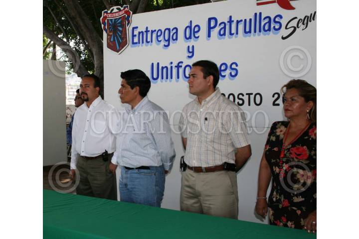 CHILPANCINGO, GUERRERO., 08AGOSTO2008.- El alcalde de Chilpancingo Mario Moreno Arcos acompañado del secretario de seguridad publica municipal Bonifacio Montufar Mendoza entregaron patrullas y uniformes a la Secretaria de Seguridad Publica Municipal, con la finalidad de combatir a la delincuencia y brindar mayor seguridad a la ciudadania. FOTO: OSCAR ALVARADO/CUARTOSCURO.COM