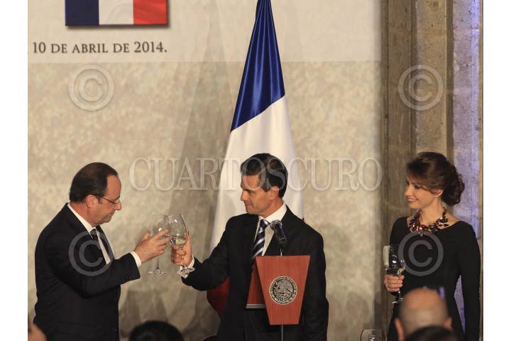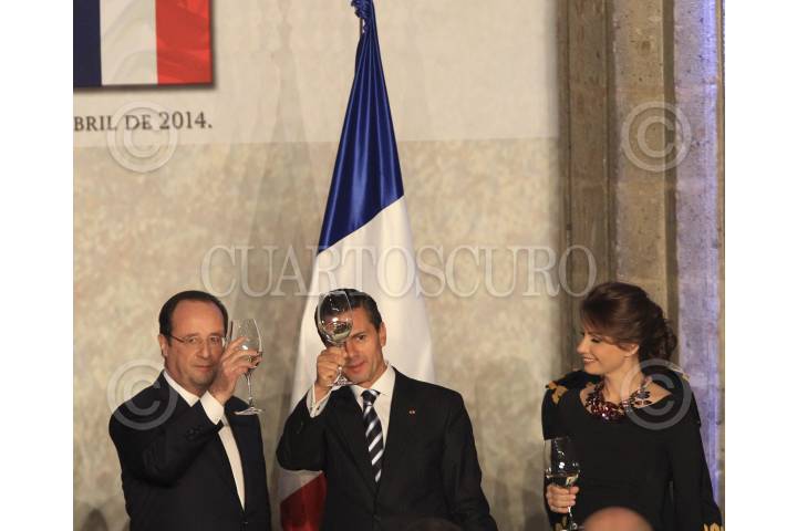 MÉXICO, D.F., 10ABRIL2014.- El Presidente de Francia Fracois Hollande cenó con su homologo mexicano Enrique Peña Nieto, en el Palacio nacional con motivo de la visita de estado que el galo realiza en el país. Al Jefe del Ejecutivo de México lo acompaño Angelica Rivera. FOTO: CUARTOSCURO.COM