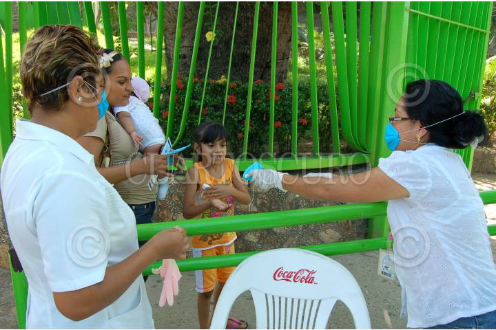 ACAPULCO, GUERRERO, 17JULIO2009.- La Secretaria de Salud en Acapulco entrego en dos días mil 500 tapabocas con medida preventiva por el virus de la Influenza humana teniendo colocado un modulo en las puertas del ayuntamiento y otro en la franja turística dijo la doctora Brisa Giles Hernández FOTO: MARINO D. VALDEZ/CUARTOSCURO.COM