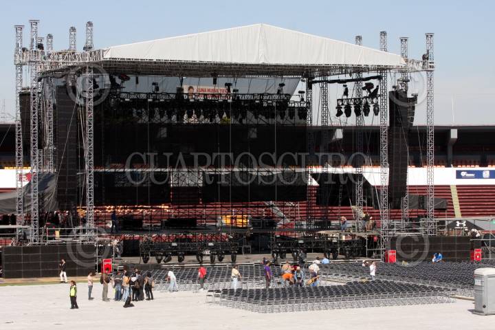 GUADALAJARA, JALISCO, 30NOVIEMBRE2011.- Trabajadores detalles para el escenario del concierto que ofrecerá la Artista Britney Spears, en el estadio 3 de Marzo, en Zapopan. FOTO: FERNANDO CARRANZA GARCIA/CUARTOSCURO.COM