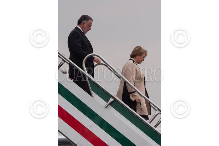 MÉXICO, D.F., 24JUNIO2009.- La presidenta de Chile, Michelle Bachelet, a su llegada al aeropuerto internacional de la Ciudad de México, en lo que supone la primera visita al país de un mandatario latinoamericano tras el brote del virus AH1N1. FOTO: RICARDO CASTELAN/CUARTOSCURO.COM