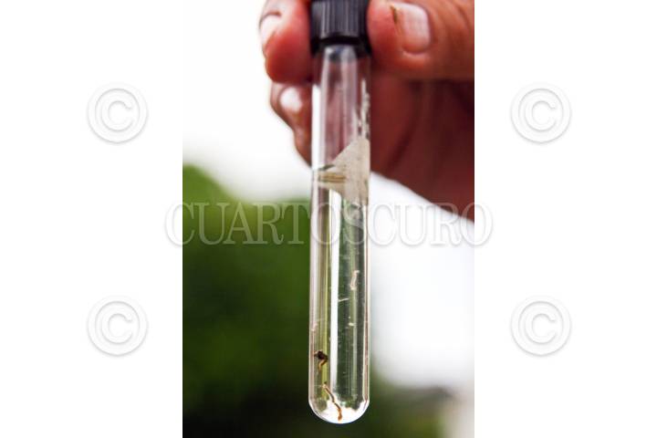 VILLAHERMOSA, TABASCO, 25SEPTIEMBRE2009.- Un brigadista del sector salud sostiene en su mano un tubo de ensaye donde muestra las larvas del dengue encontrado en una casa habitación de la villa Ixtacomitan. Ante tal caso, revelan que en la entidad hay mil 500 casos de dengue. FOTO: MARCO POLO GUZMÁN HERNÁNDEZ/CUARTOSCURO.COM