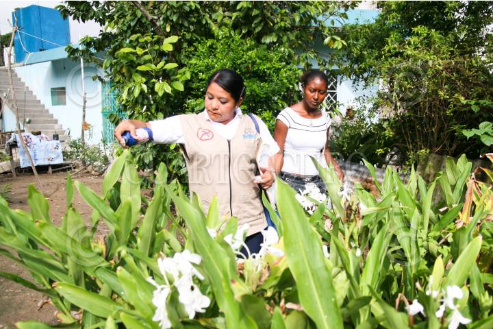 VILLAHERMOSA, TABASCO, 25SEPTIEMBRE2009.- Una cuadrilla más de brigadas contra el dengue se encarga de verter el Abate; es un granulado al dos por ciento que se aplica en donde hay depósitos de aguas, ya sea en los interiores o exteriores de las casas. En la imagen las brigadistas realizan su labor en la villa Ixtacomitan primera sección en donde el brote de dengue se da manera significativa. FOTO: MARCO POLO GUZMÁN HERNÁNDEZ/CUARTOSCURO.COM