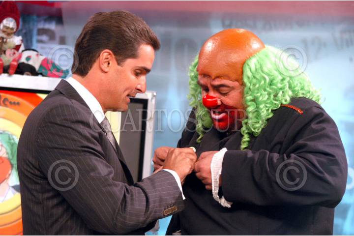 México, D.F., 02JUNIO2004.- Emilio Azcarraga Jean se despidió de Brozo durante la última emisión de su noticiero. FOTO: CUARTOSCURO.COM