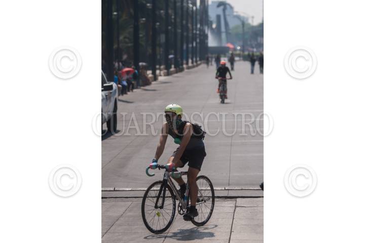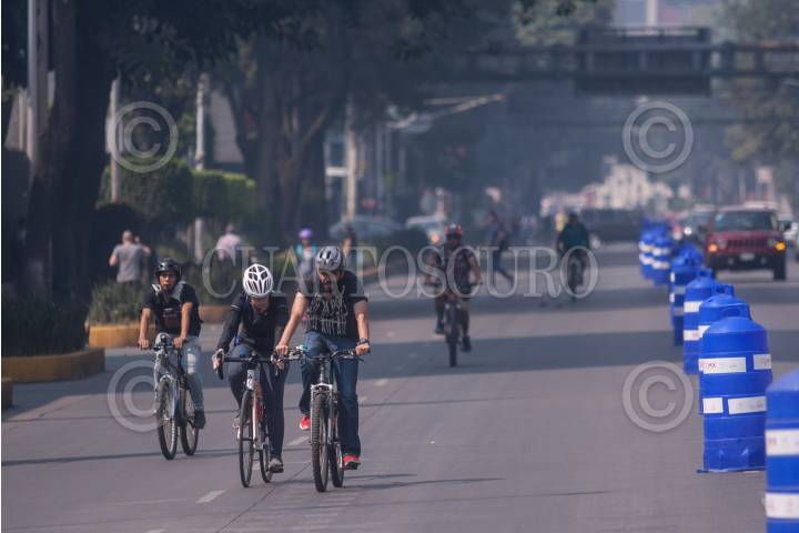 CIUDAD DE MÉXICO, 12MAYO2019.- El Paseo Ciclista se realizó a pesar de la mala calidad del aire que se registró en la ciudad. FOTO: ISAAC ESQUIVEL /CUARTOSCURO.COM